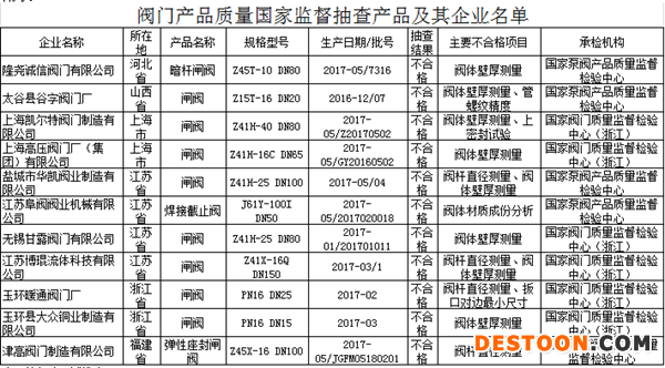 核心提示:國家質(zhì)量監(jiān)督檢驗檢疫總局公布了2017年第2批:閥門產(chǎn)品質(zhì)量國家監(jiān)督抽查結(jié)果。結(jié)果顯示,共有11批次產(chǎn)品不符合標(biāo)準(zhǔn)的規(guī)定,涉及到
